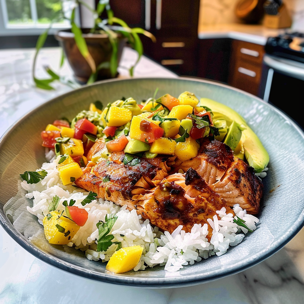 Irresistible BBQ Salmon Bowls with Mango Avocado Salsa
