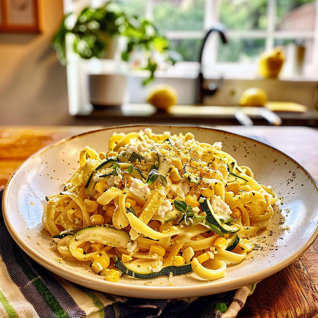 Creamy Corn & Zucchini Pasta with Lemon Ricotta Delight