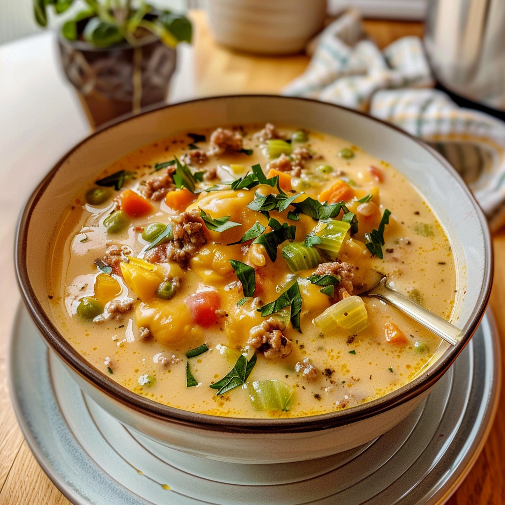 Cozy Crockpot Cheeseburger Soup Recipe for Family Comfort