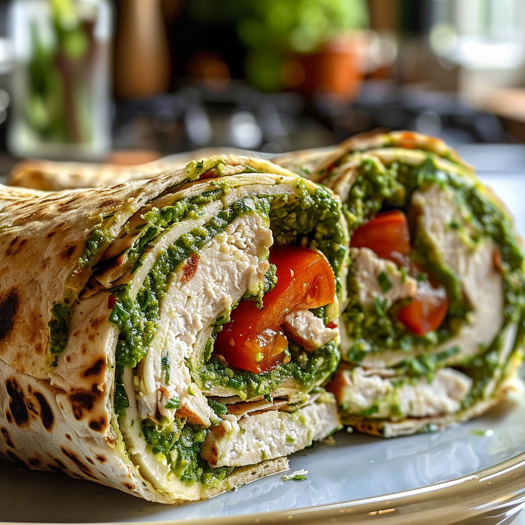 Delicious Healthy Cottage Cheese Pesto Wraps with Turkey