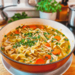 Chicken Noodle Soup is a timeless comfort dish that warms the heart and soul. This easy-to-make recipe features tender chicken, vibrant vegetables, and hearty egg noodles in a savory broth. Perfect for chilly evenings or when you’re feeling under the weather, each spoonful envelops you in warmth and nostalgia.