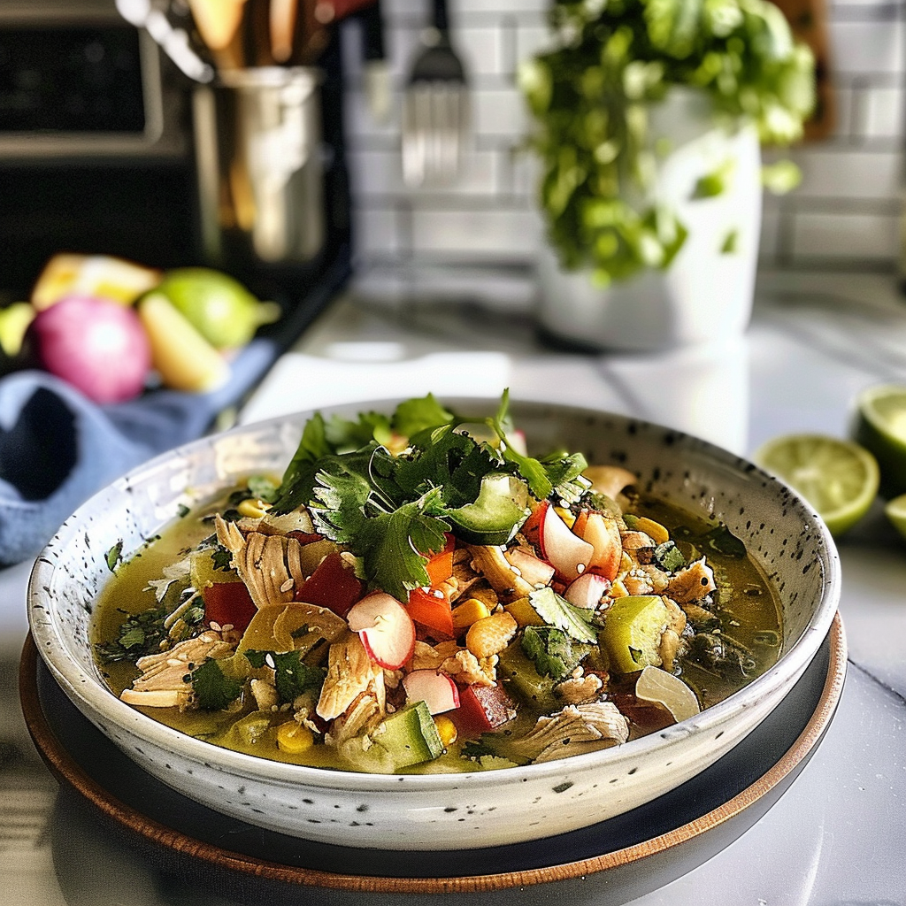 - The tender chicken, zesty green chilies, and hearty hominy come together effortlessly for a dish that feels like a warm hug