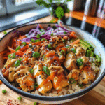 Crispy Bang Bang Chicken Bowl is a flavor-packed dish that combines juicy, crispy chicken with a sweet and spicy sauce, served over fluffy rice and vibrant vegetables. This easy-to-make recipe is perfect for weeknight dinners or impressing guests, offering an irresistible crunch and a delightful explosion of flavors in every bite.