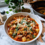 The aroma of simmering vegetables and flavorful sausage dances through the kitchen as you prepare a bowl of minestrone with sausage and pesto. savory Brussels sprouts skillet Each spoonful bursts with comforting flavors, creating a warm embrace for your taste buds that makes you feel right at home.