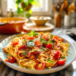 Delight in the vibrant flavors of Cherry Tomato Bruschetta Pasta, a dish that captures the essence of summer with every bite. Bursting with juicy cherry tomatoes, fragrant basil, and a hint of garlic, this easy-to-make recipe is perfect for busy weeknights or impressing dinner guests. Enjoy it warm or cold as a refreshing meal that brings the taste of Italy right to your kitchen.