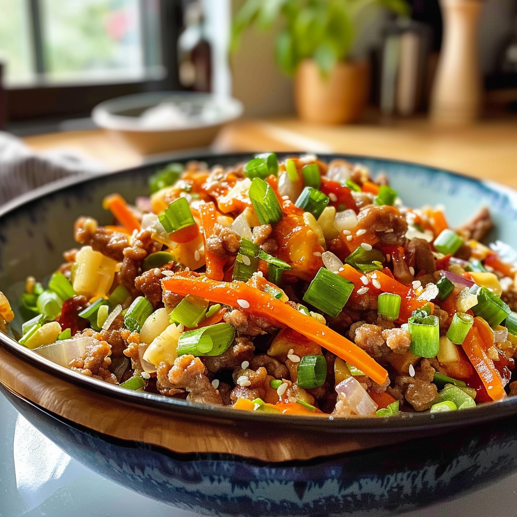 Discover the joy of Low-Carb Egg Roll in a Bowl, a quick and delicious meal reminiscent of traditional egg rolls but without the carbs! Featuring savory ground meat and crisp cabbage coated in a tangy sauce, this dish is colorful, satisfying, and perfect for weeknight dinners or impressing guests. Easy to prepare, it’s a nostalgic yet modern take on a beloved classic.