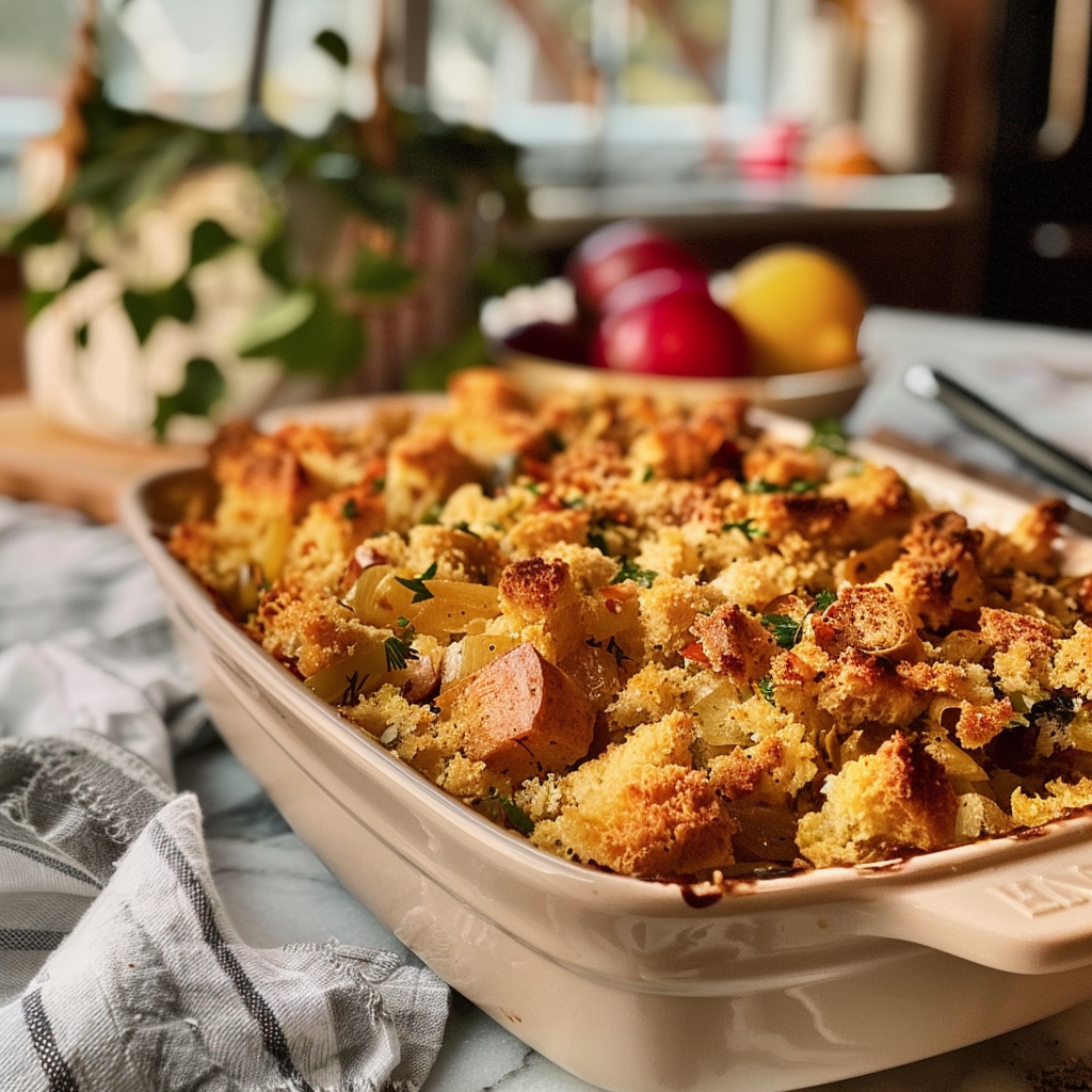 Gathering around the dinner table, my family’s eyes light up when this casserole makes its grand entrance. It has become a staple at our Thanksgiving feasts, leaving everyone asking for seconds.